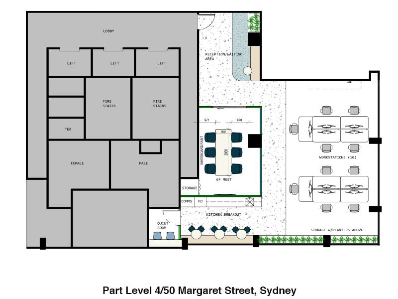 50 Margaret Street overlooks Wynyard Park positioned on top of Wynyard train station, close proximity to Barangaroo via Wynyard Walk. Extensive building upgrades to ground floor lobby including new end of trip showers and lockers in basement. 4.5 Star NABERS Energy rating